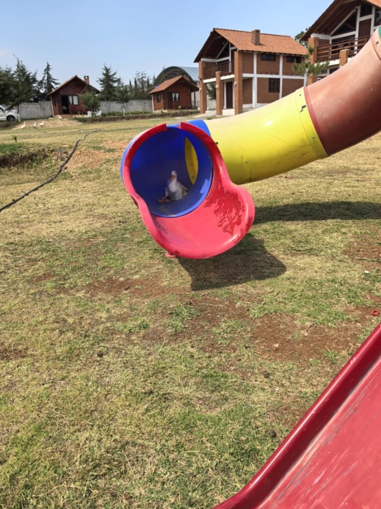 WiFi, juegos infantiles, columpios, resbaladilla, sube y baja, canchita de futbol de arena, granjita para que puedan realizar terapia con los animales, con becerritos que se dejan tocar, una cerda que se deja agarrar y jugar con ella, borregos.
